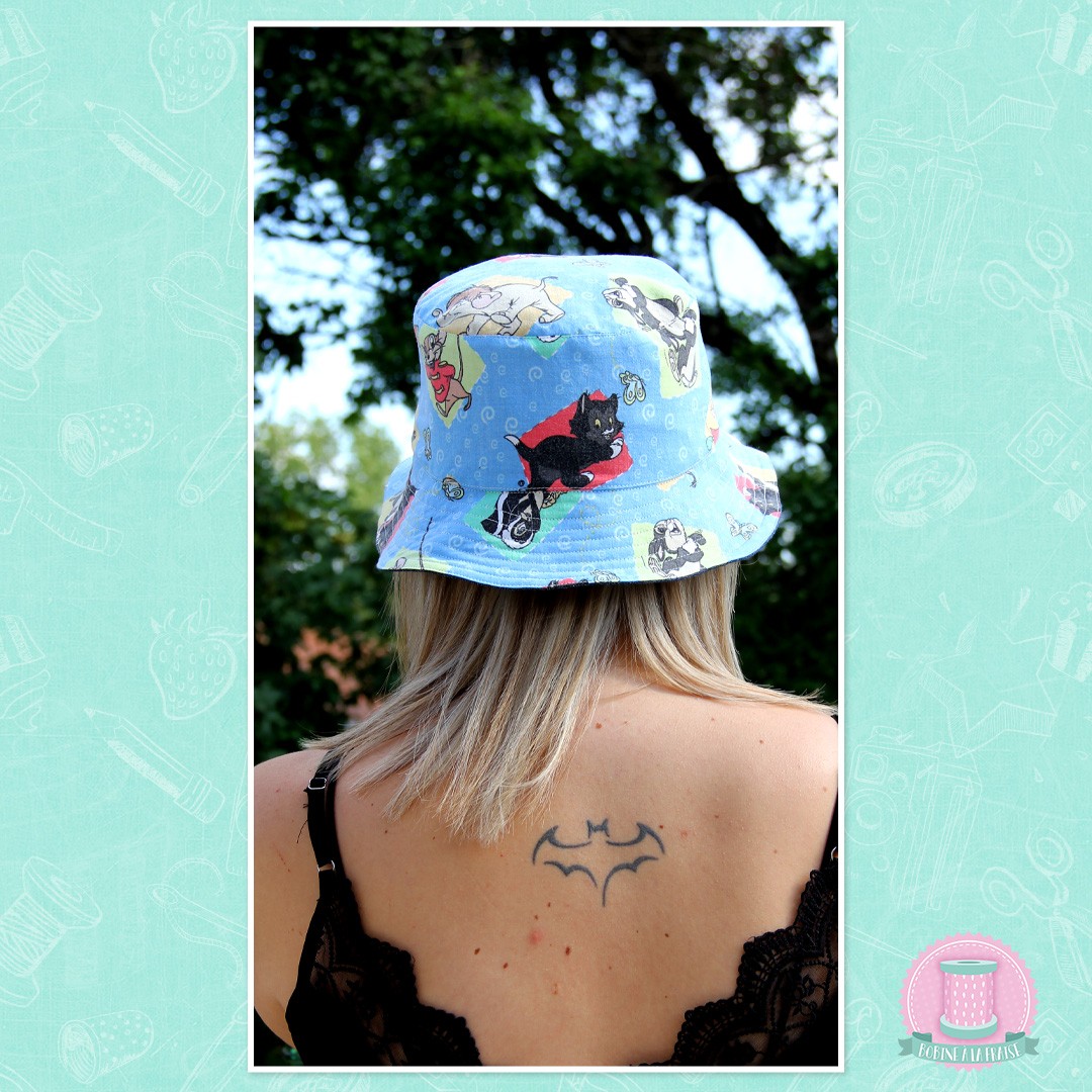 Bob cousu dans un drap Vintage aux couleurs des petites bestioles Disney, entièrement doublé en denim Upcyclé, pourra donc se porter côté jean pour un look plus sobre :)