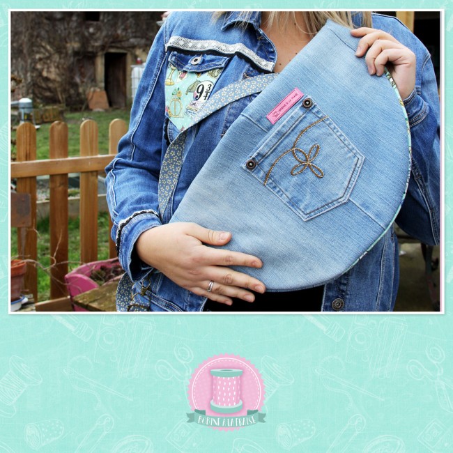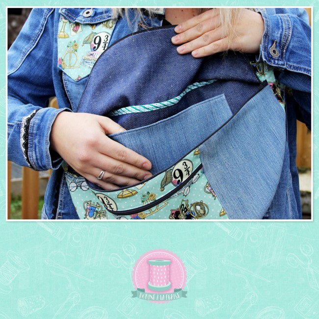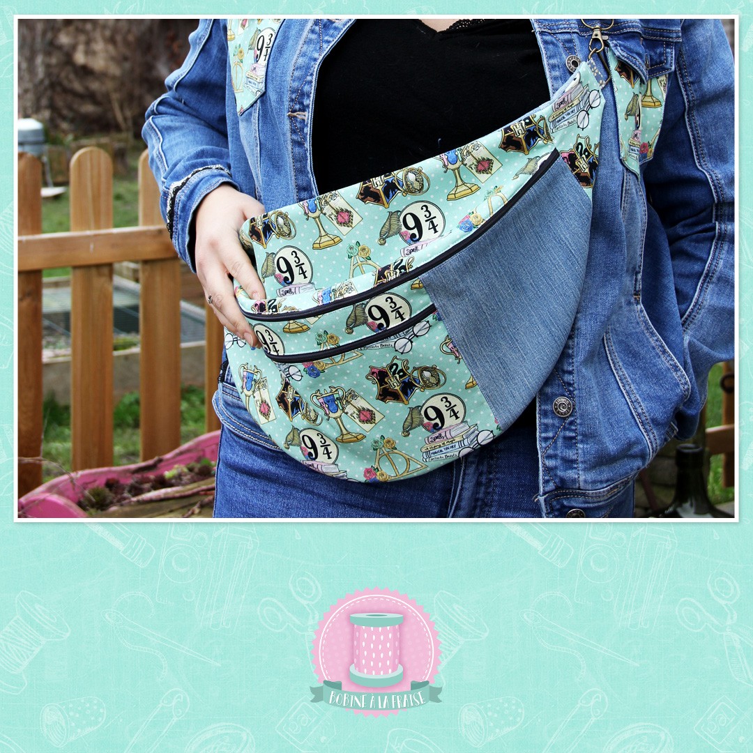 Sac banane cousu dans un tissu aux couleurs de Poudlard et entièrement doublée en jean recyclé :)