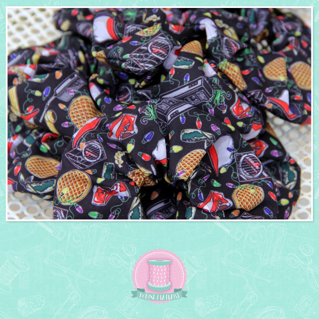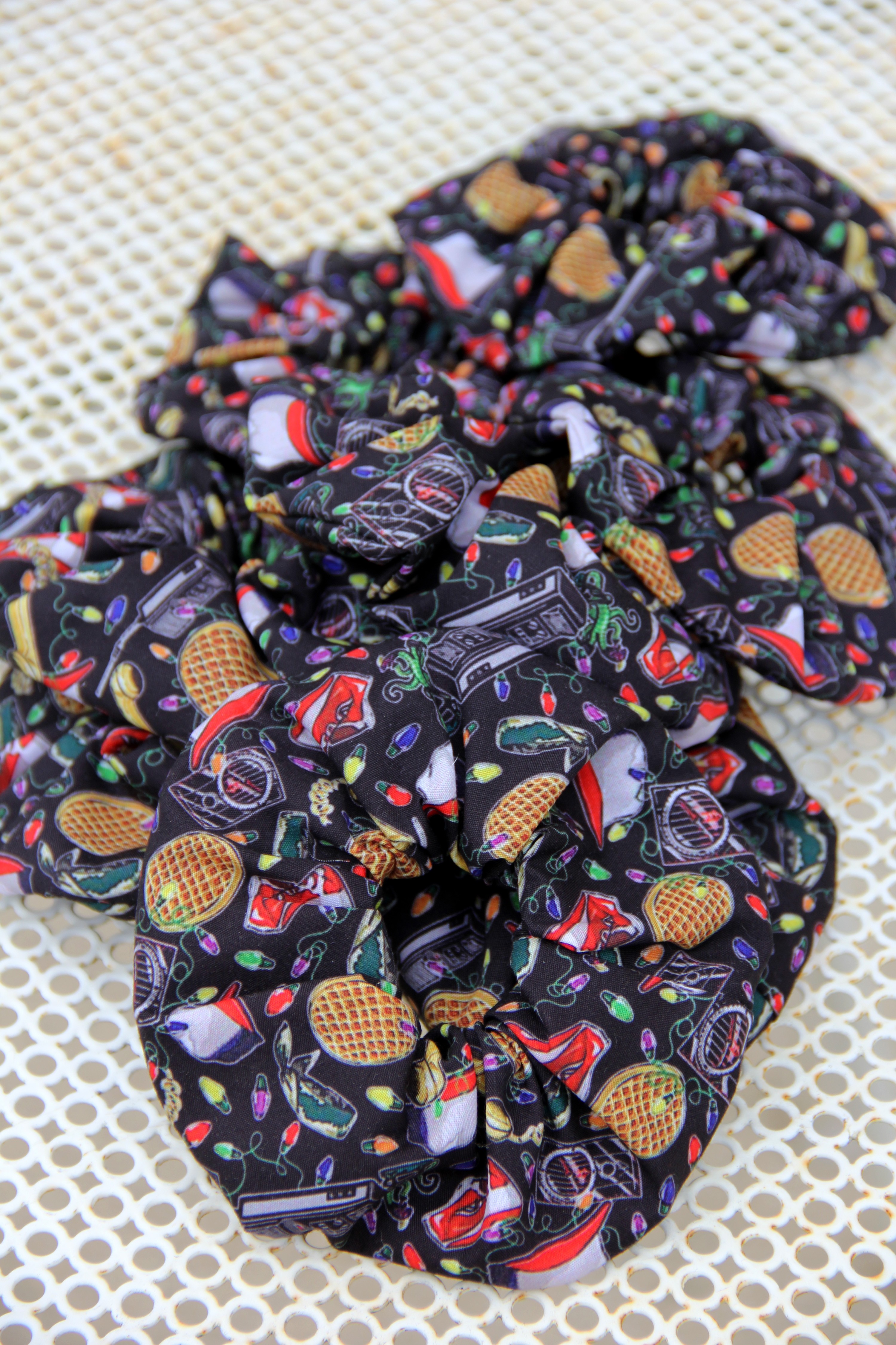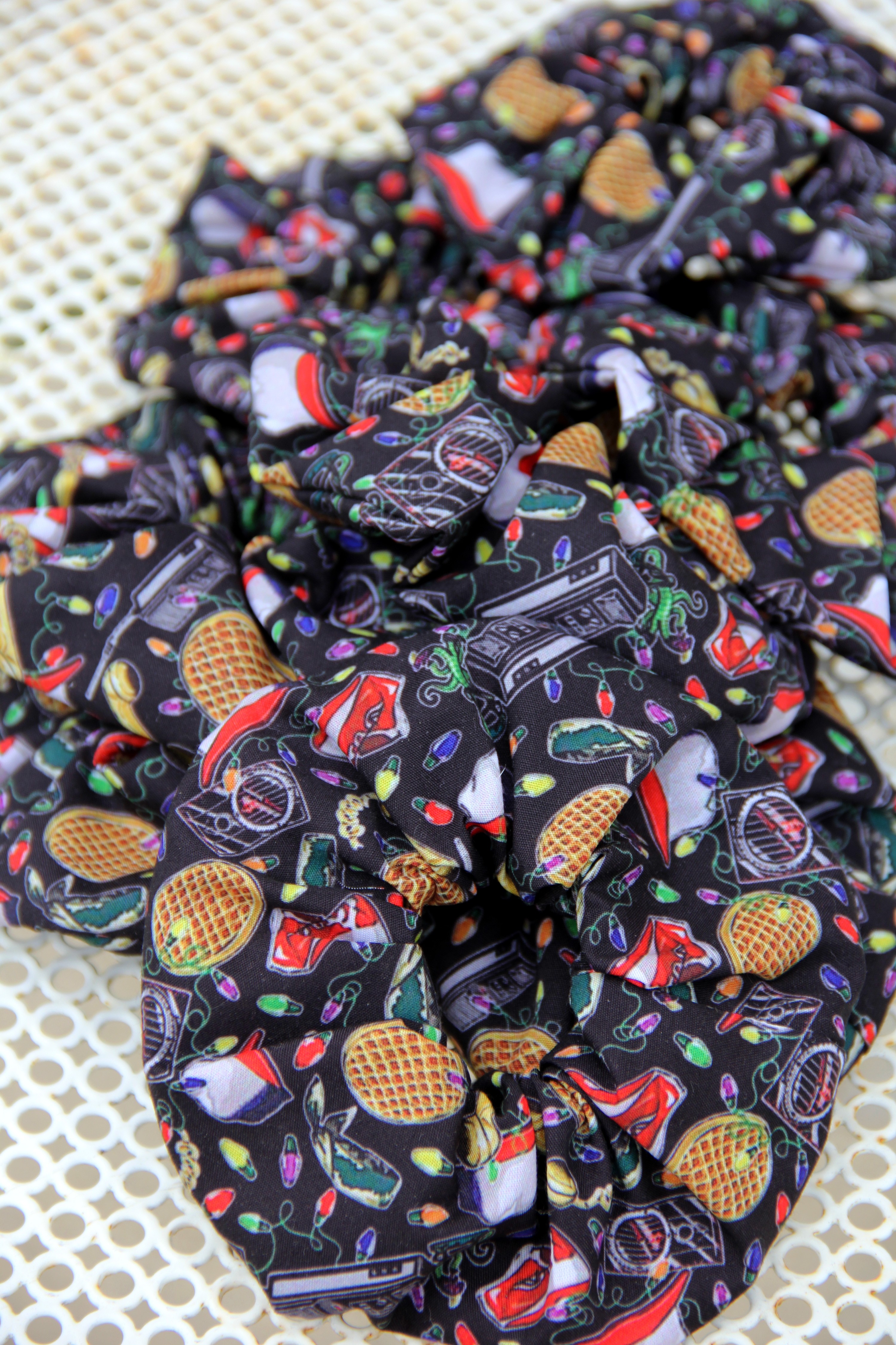 Chouchou à chignon: avec on ne fait qu'un ou deux tours pour profiter des motifs. L'idéal étant de le poser sur un chignon ou une queue de cheval déjà tenu par un petit élastique :)