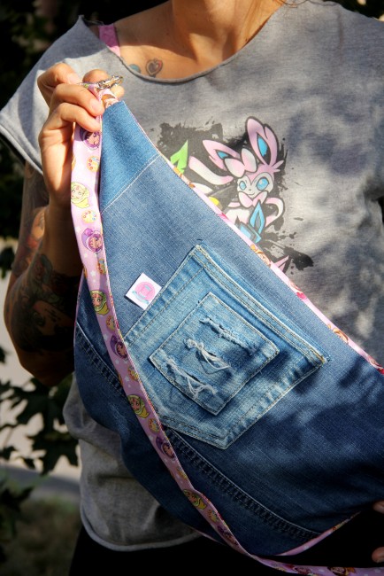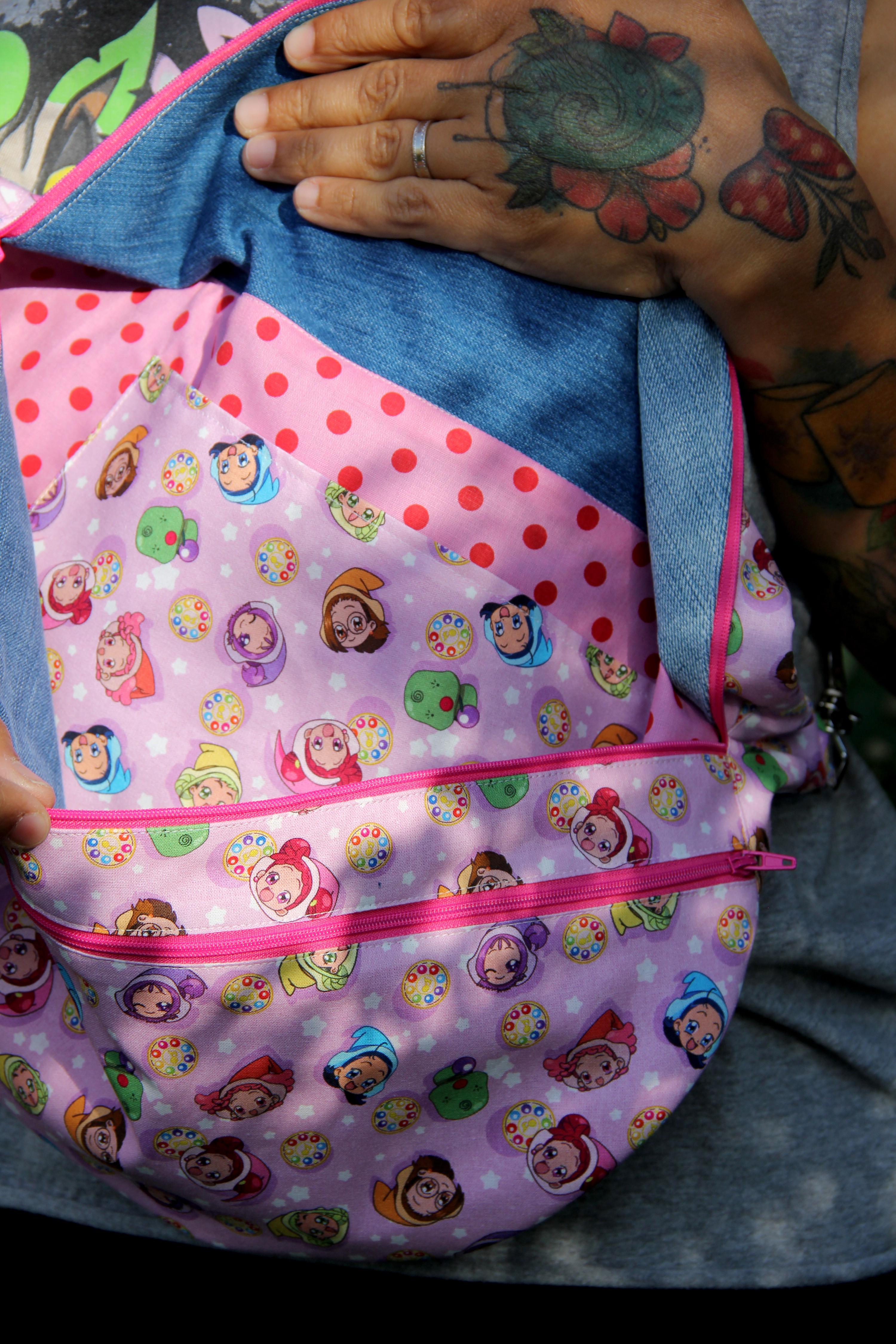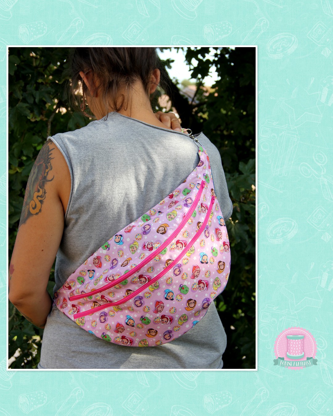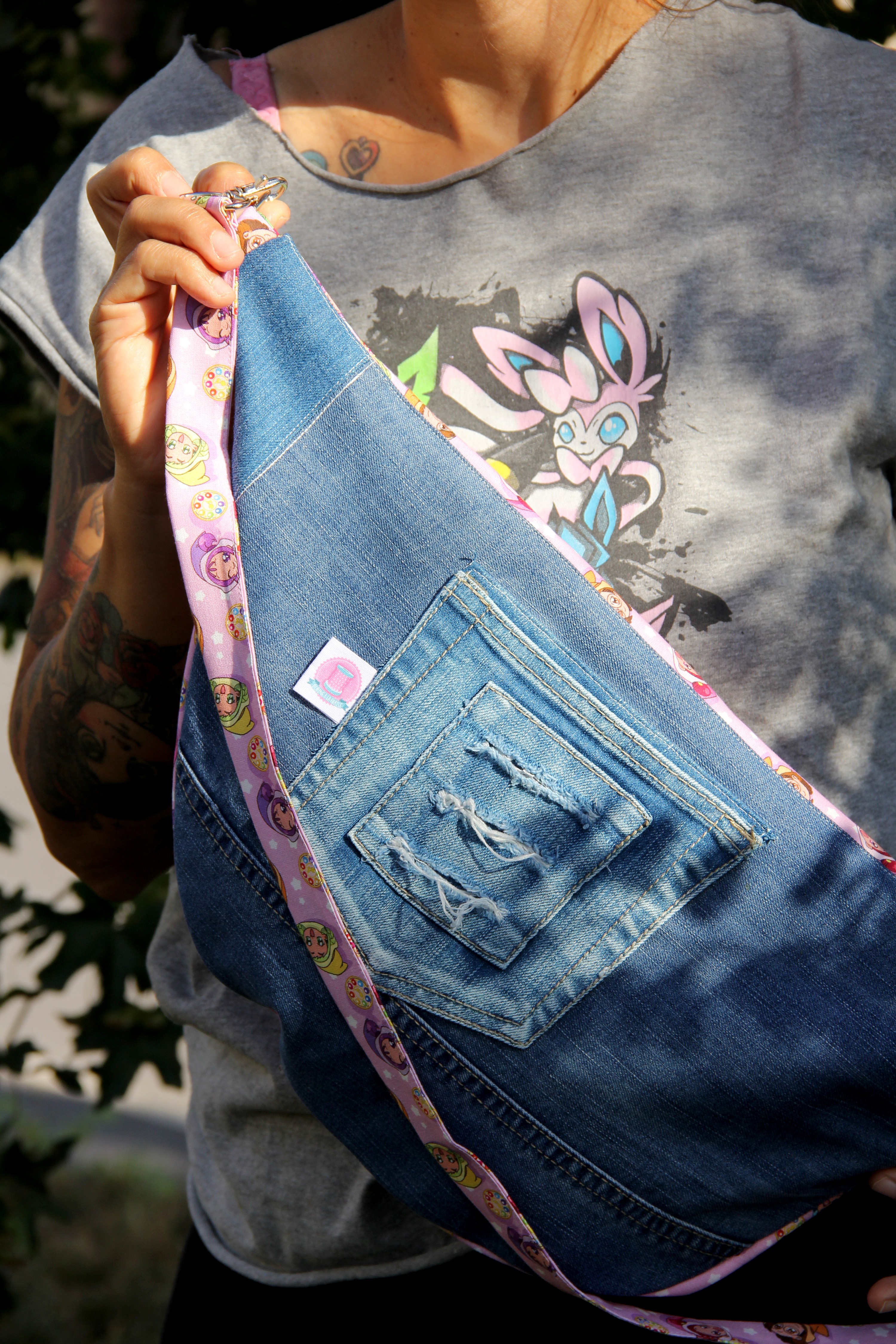 Sac banane aux couleurs de Magical Doremi, doublée en jean upcyclé :)