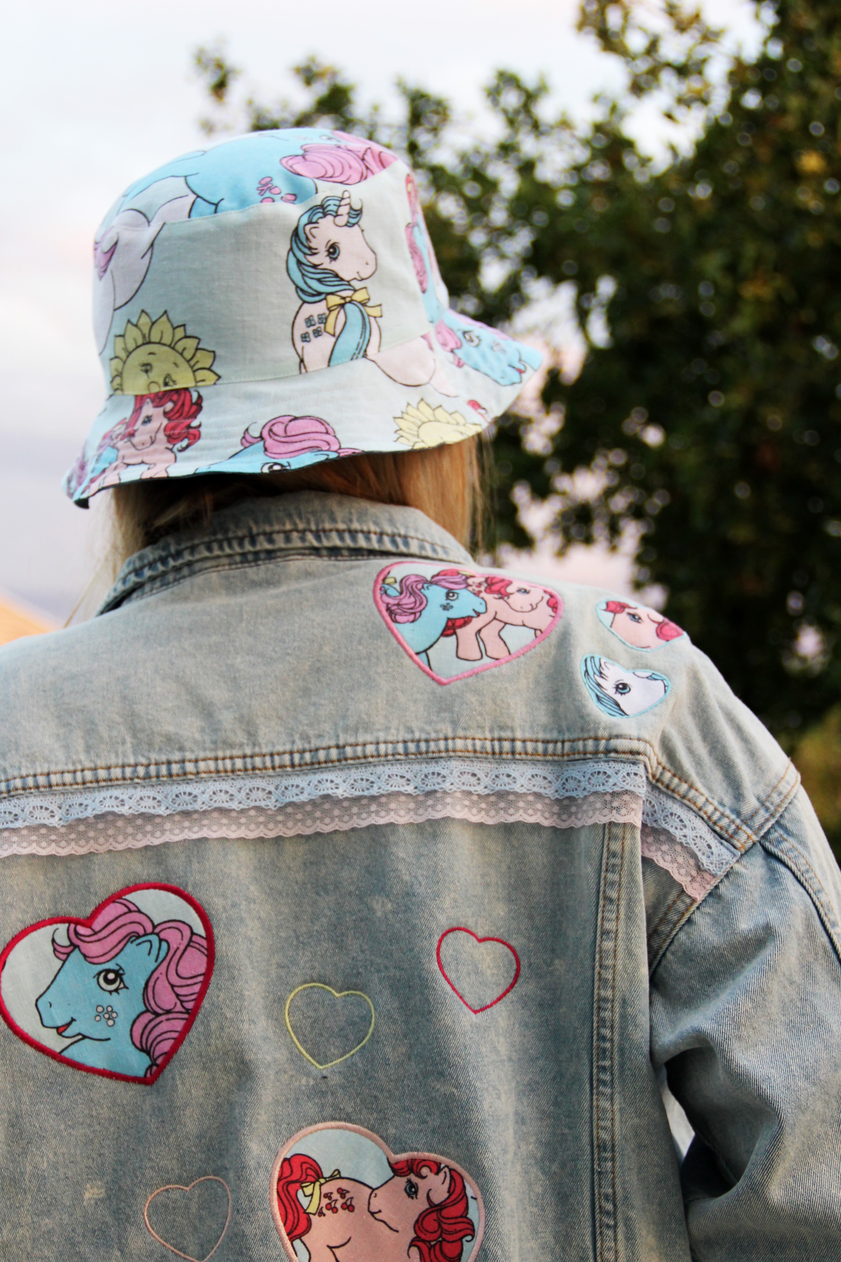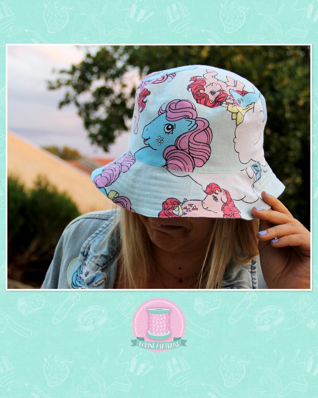 Bob cousu dans un drap Vintage aux couleurs des petits poneys, entièrement doublé en denim Upcyclé, pourra donc se porter côté jean pour un look plus sobre :)